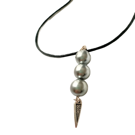 Soft Gray Glass Pearl Trio w/Silver Spike Drop Necklace