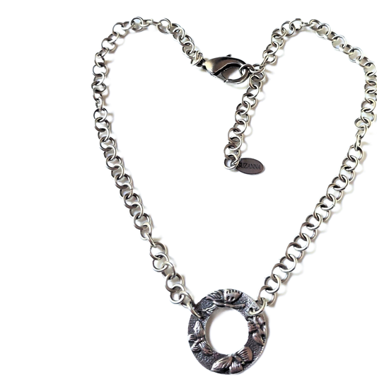 Sterling Silver 1-in-1 Chain Choker Necklace w/Sterling Silver Butterfly Embossed Donut Pendant OOAK