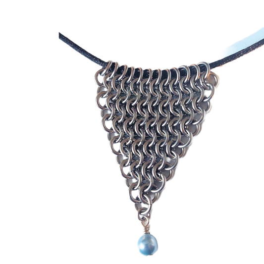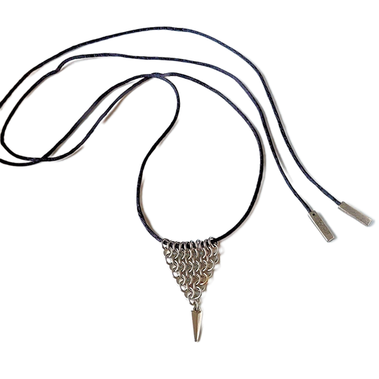Stainless Steel Chain Maille Leaf/Half-Diamond Pendant w/Silver Spike & Bolo Tie Necklace