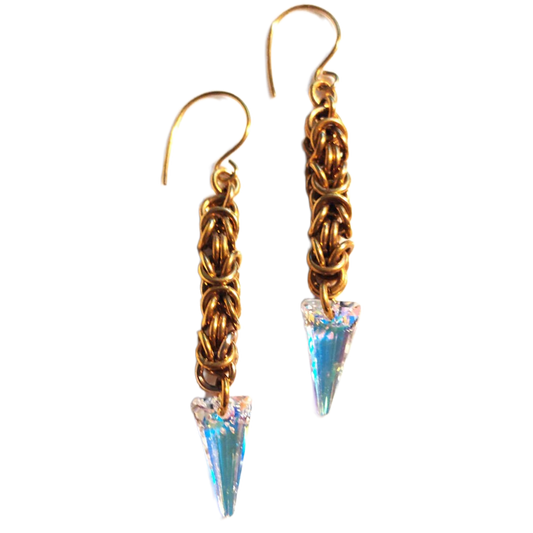 Swarovski Spike Crystal Brass Byzantine Chain Maille Earrings