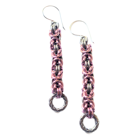 Stainless Steel & Pink Aluminum Byzantine Earrings