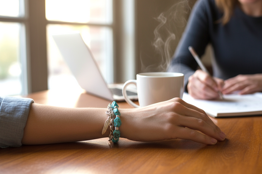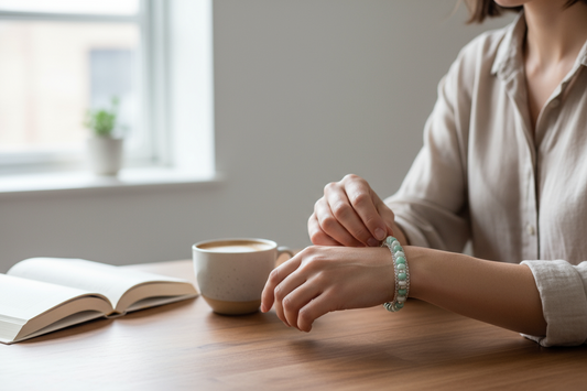 Amazonite Rondelle Bead & Two Chains and Charm Cluster Three-Strand Bracelet