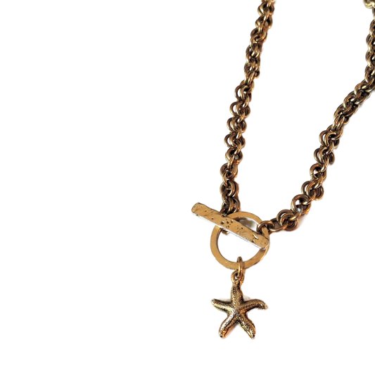 Brass 1-in-1 Handmade Chain Necklace w/Toggle Clasp & Gold Starfish Charm