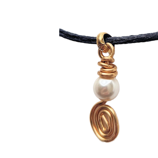 Layered Silk Cord Golden Brass Spiral & Swarovski Crystal Pearl Pendant Necklace OOAK