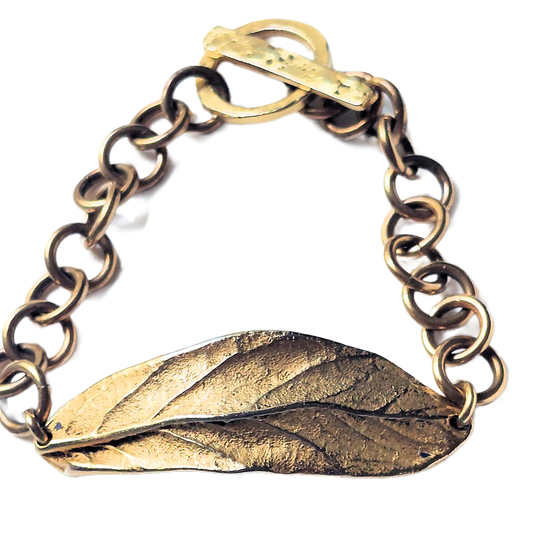 24k Gold-plated Pewter Leaf & Brass Chain Bracelet
