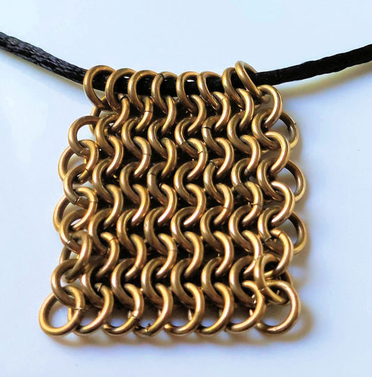 Rectangular European 4-in-1 Brass Chain Maille Pendant on Black Silk Cord Necklace