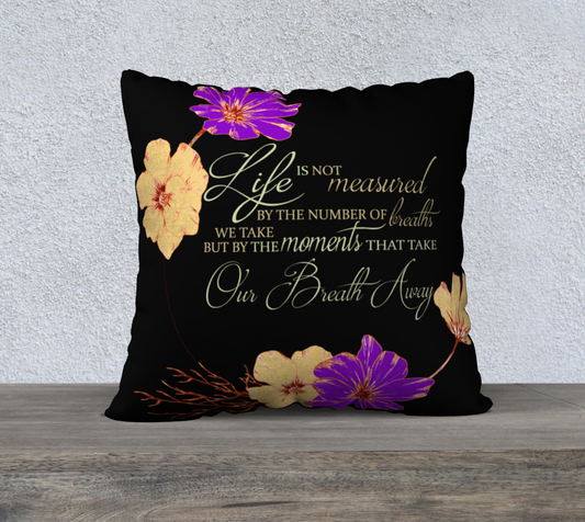 Black Velveteen Pillow Cover w/Quote "Life is not measured..." - 5 Sizes