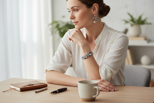 Polished Crystal Quartz & Diamond-Cut Stainless Steel Rings Earrings