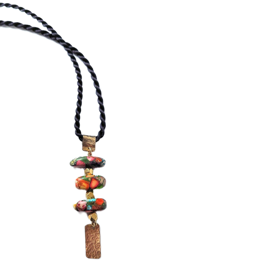 Trio of Layered Mixed Impression Jasper Stones and Gold-plated Faceted Beads Pendant Necklace OOAK