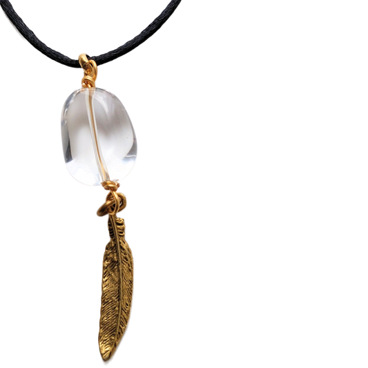 Polished Crystal Quartz & 24k Gold-plated Pewter Feather Pendant Necklace