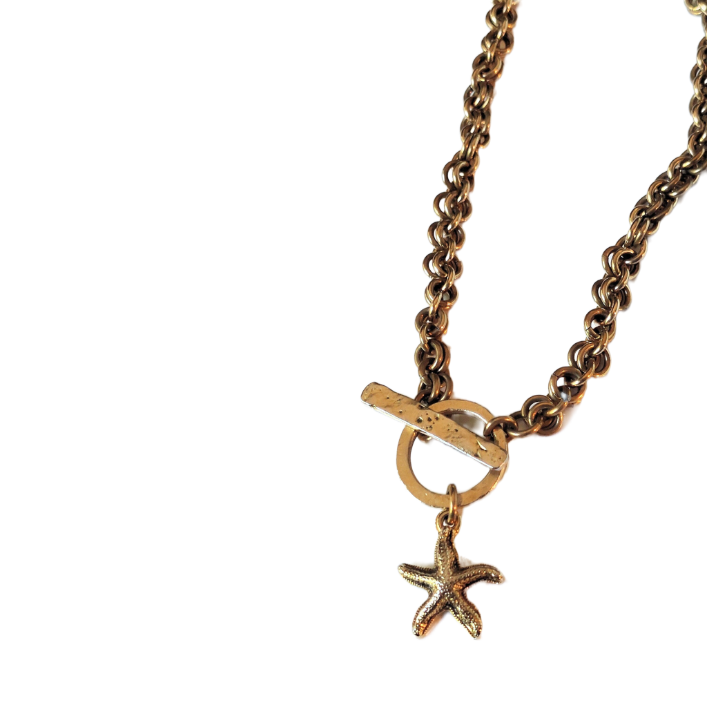Brass 1-in-1 Handmade Chain Necklace w/Toggle Clasp & Gold Starfish Charm