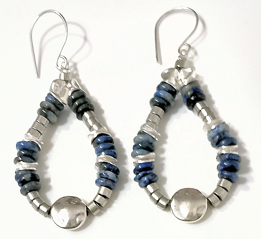 Denim Lapis Lazuli & Silver Teardrop Hoop Beaded Earrings