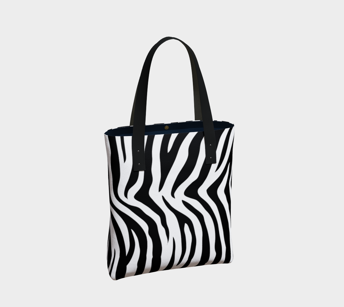 Black & White Zebra Print Canvas Tote Bag w/Vegan Leather Handles